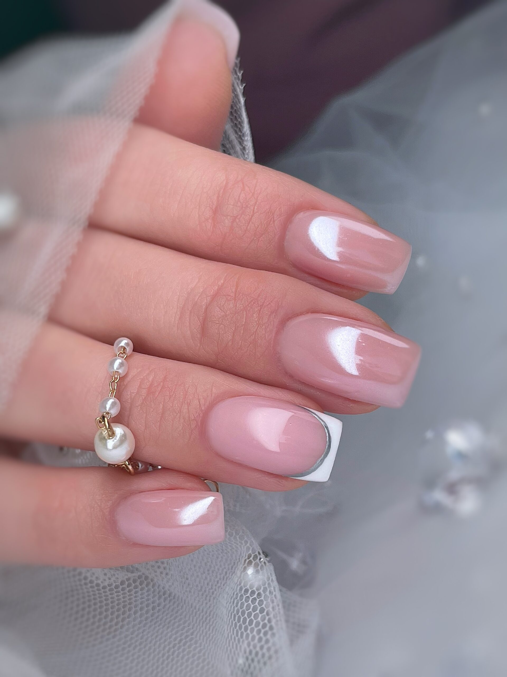 - frencha na paznokciu w kształcie migdał oraz kwadrat
